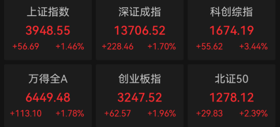 4月1日,四大指数集体收涨。沪指涨1.46%,深成指涨1.7%,创业板指涨1.96%,科创综指涨3.44%。
