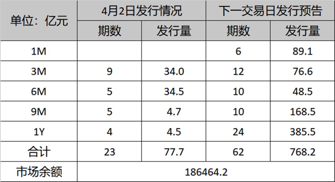 同业存单发行23只,实际发行量77.7亿元,较前日增加8.2亿元。